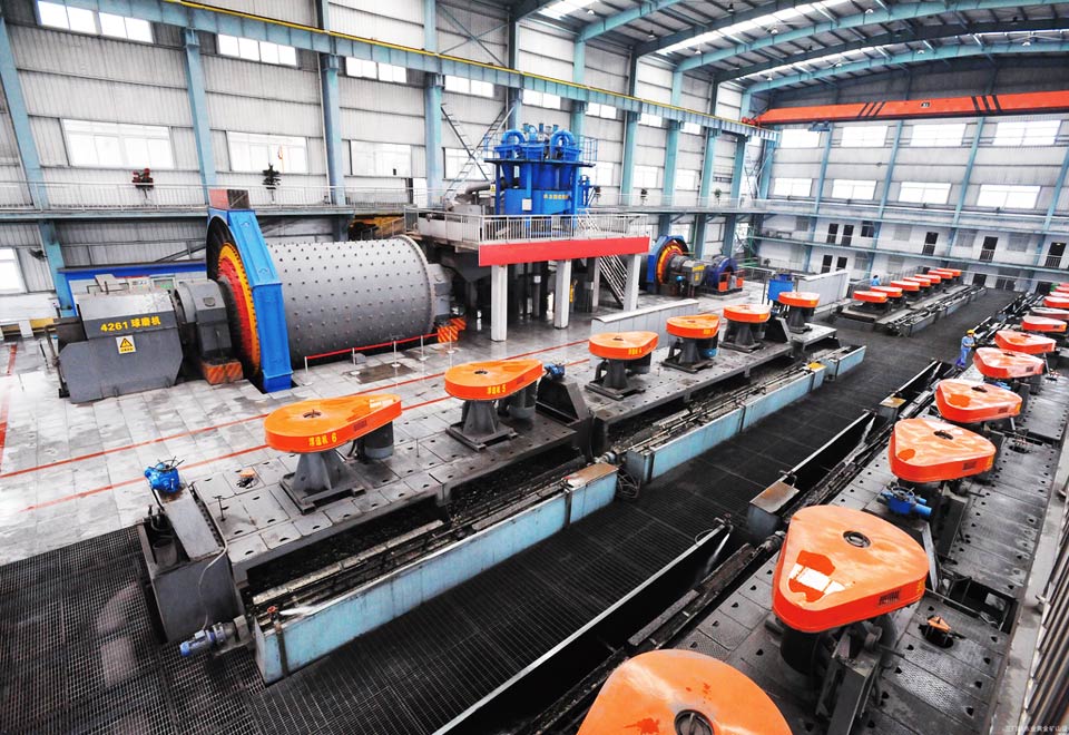 2、磨粉:经过破碎的物料需要经过球磨机中磨粉加工,再到螺旋分级机中分级、洗选。